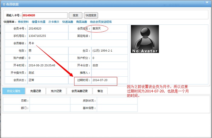 查看会员信息,该会员限时卡月卡已经设置成功。