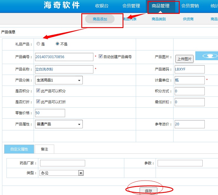 1.找到商品管理主菜单,然后点击商品添加,填写此商品各种属性,点击保存,即可完成此商品初始保存。