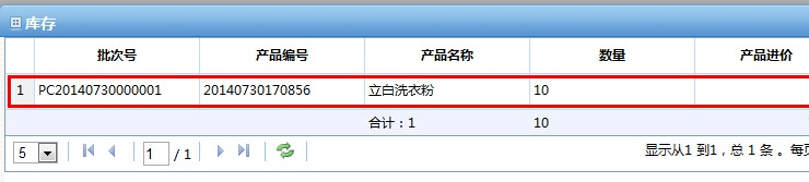 点击统计报表下产品进货记录即可看到刚进货的产品