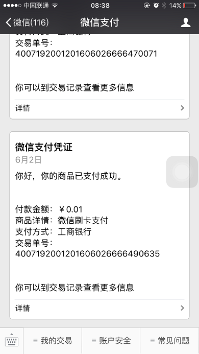 特别注明:所有通过扫码支付结算的钱都会到帐商家的公众号商户平台,商户是可以把钱提现到银行卡的;所有扫码支付订单都会形成相应的记录,详细记载会员消费的产品、时间及金额;每个店铺可以设置独立的微信收款账号,店铺扫码支付财务相互独立,互不影响。