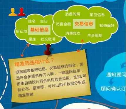 这些数据,都可以通过CRM系统获得,会员系统里有几十个维度的精准筛选功能,点一个按钮,系统就可以告诉你满足条件的顾客是谁。在雅座,还有专门的数据分析部帮助我们的客户做这些维度的分析。图4