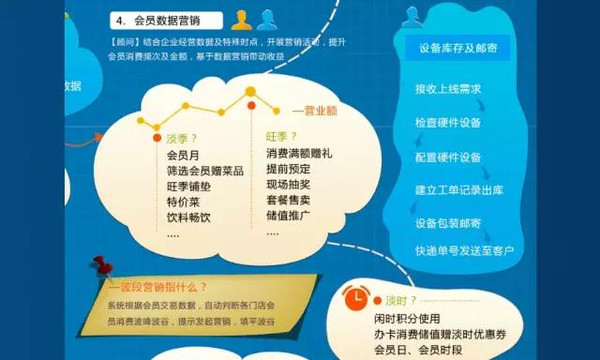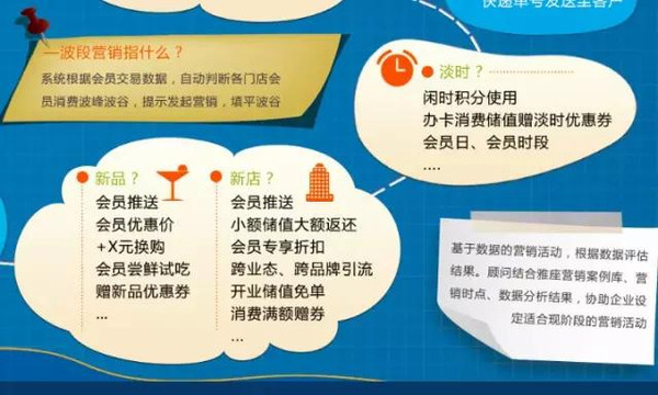 项目上线后的6-12个月,数据有了,营销的时候就有了可以提前告知推送的群体,也可以初步的筛选会员,提升营销活动的效果。在这个阶段,很多餐饮企业的传统营销方式,比如淡季营销、旺季营销、淡时营销,特定时点的营销,比如新品上市、新店开业,都可以和会员做结合。图1