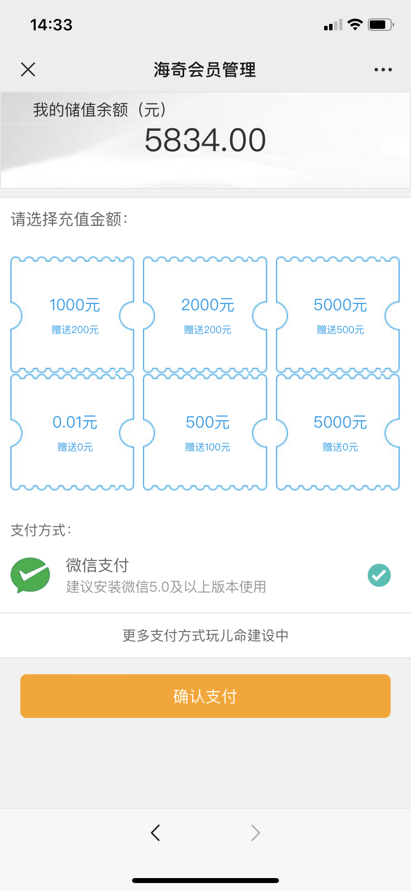 可以设置充值赠送活动,冲多少送多少!会员可以自行选择充值模板,在微信会员卡上自主完成充值。如图: